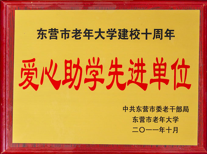 東營市老年大學建校十周年愛心助學先進單位