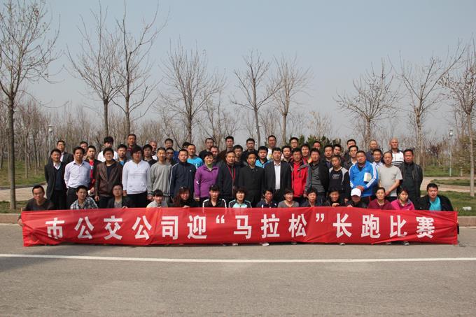 為迎接東營市“國際馬拉松賽”,積極開展群眾性體育活動,提高職工身體素質,市公交公司于2013年4月21日上午9:00時,舉辦了迎“馬拉松”長跑比賽,比賽在清風湖西岸南頭鳴槍開跑,來自公司各單位的70余人參加比賽,其中女職工21人,男職工51人,參賽人數超過了歷屆。比賽全程4.3公里,終點設在清風湖東岸南頭。
