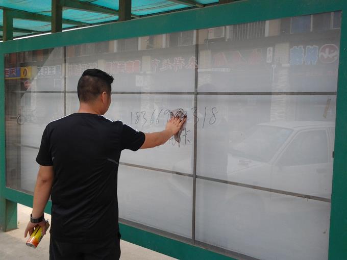 目前,我市創建全國文明城市工作已經進入攻堅階段,然而炎熱的天氣并沒有阻擋市公交公司汽車二隊志愿者清理公交站點小廣告的腳步。