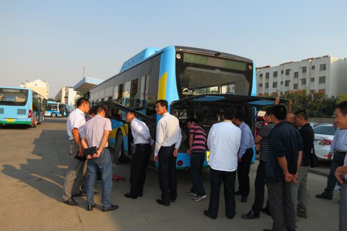 今年市公交公司購入的60輛中通新能源公交車采用氣電混合動力、AMT變速箱、空氣懸架、前后輪盤式制動,配置較高,在日常維護(hù)和修理上與公司現(xiàn)有的傳統(tǒng)常規(guī)車輛有較大不同,對維修人員的理論知識和維修技能要求較高。為了使維修人員深入了解此類車輛的基本原理、熟悉日常維護(hù)規(guī)范、掌握日常修理技巧和安全注意事項(xiàng),以充分發(fā)揮此類車輛的最佳使用效能,市公交公司技術(shù)科邀請中通新能源客車廠和配套廠家技術(shù)人員對公交公司維修人員進(jìn)行培訓(xùn)。此次培訓(xùn)采取理論與上車操作相結(jié)合的形式,理論培訓(xùn)結(jié)束后,培訓(xùn)老師還帶領(lǐng)參訓(xùn)人員來到車場,對照現(xiàn)場實(shí)物進(jìn)行了講解和探討。