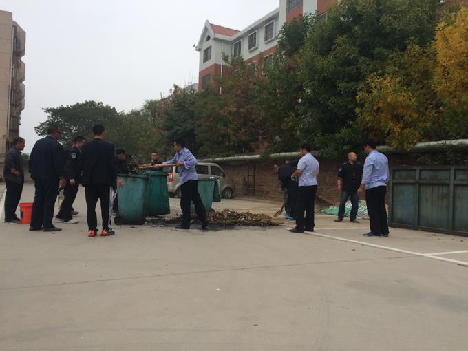 衛生大掃除中,他們或三人一伙,或五人一組,有的負責修剪參差不齊的綠化帶,有的負責清理枯黃的雜草,有的負責拿著垃圾袋拾撿煙頭,有的負責清掃被風卷到墻角的垃圾,有的負責裝卸和拖運垃圾箱,一個個忙的滿頭大汗,即使飛揚的塵土沾滿了衣服也全然不顧,令人為之動容。