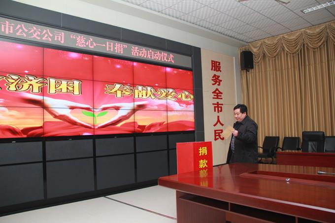 為了進一步弘揚中華民族互助互愛、無私奉獻的傳統(tǒng)美德,促進社會主義精神文明建設(shè),11月22日,市公交公司2015年“慈心一日捐”活動捐贈儀式在公司一樓會議室舉行。近千名干部職工紛紛伸出援助之手,慷慨解囊,踴躍捐款,共計捐款101700元。所有捐款于24日上交市慈善總會。