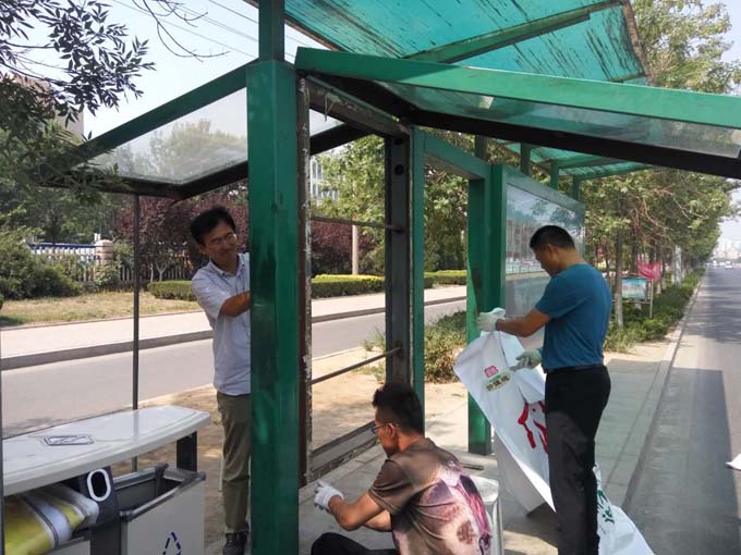 國慶前夕,市公交公司廣告部利用一周的時間,對部門所負責的車輛廣告,候車廳廣告及站牌設施進行逐一排查,對畫面破舊損壞的廣告立即進行拆除和更換,對候車廳、站牌等設施的衛(wèi)生進行檢查,發(fā)現(xiàn)有達不到創(chuàng)城要求的現(xiàn)象,相關人員立即進行處理、改進,確保排查過后廣告畫面整潔美觀、站牌設施標識清楚完整。