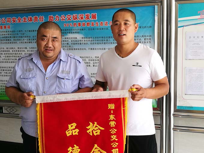 事后,失主拿著錦旗來(lái)到市公交公司汽車七隊(duì),找到車隊(duì)領(lǐng)導(dǎo)和駕駛員,感謝拾金不昧的好司機(jī)---楊寶海。