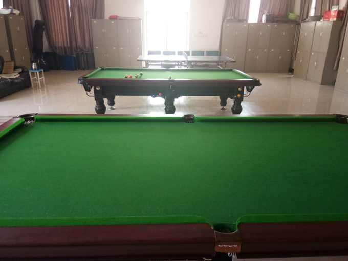 由于臺球有眾多的愛好者,使用頻繁,又加之有不少初學者不能掌握正確的使用方法,用球桿擊打母球時經(jīng)常出現(xiàn)“爆桿”并戳到桌布上,加速了臺球設施的損壞,致使臺球桌無法使用。看到這一情況,雷鋒小組成員出資對臺球桌更換了新的桌布、一組臺球、一根架桿、六個球籠和六個桌腿墊子等一系列相關配件。