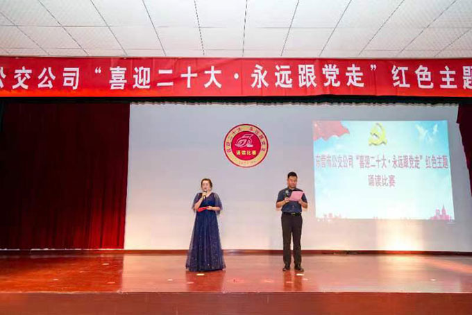 為迎接黨的二十大勝利召開,更加深入學習貫徹省十二次黨代會精神,集中展現新時期公交干部職工在各自工作崗位上的新作為、新?lián)敗⑿伦藨B(tài),引導公司干部職工更加堅定理想信念,在“七一”建黨節(jié)來臨之際,市公交公司于6月30日上午組織開展了“喜迎二十大·永遠跟黨走”紅色主題誦讀比賽活動。市交通運輸局直屬機關黨委專職副書記趙秀來同志到場指導,市公交公司黨委委員、工會主席蔣積堯,黨委委員、辦公室主任劉玉忠等出席活動。