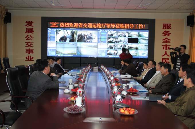 4月11日下午,省交通運輸廳副廳長謝濤一行,在市交通運輸局黨委書記、局長李兆君、市公路局局長王泮清、市交通運輸局黨委副書記鄭月成、市公路局副局長董安林、市運管處處長李希俊以及市公交公司經理朱新民等有關領導的陪同下,到市公交公司對信息化建設進行了實地檢查指導。