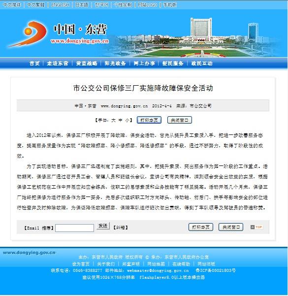 2012年4月3日東營市政府網站報道