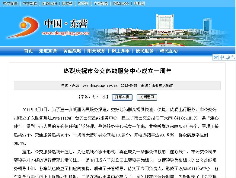 2012年5月25日東營市政府網站報道