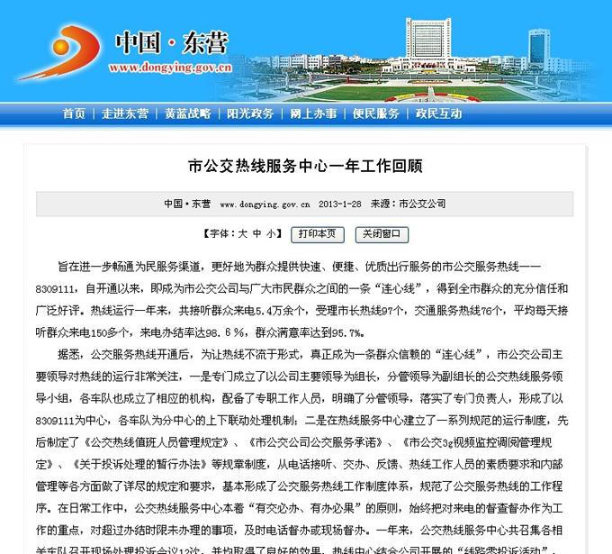 2013年1月28日東營市政府網(wǎng)站報道