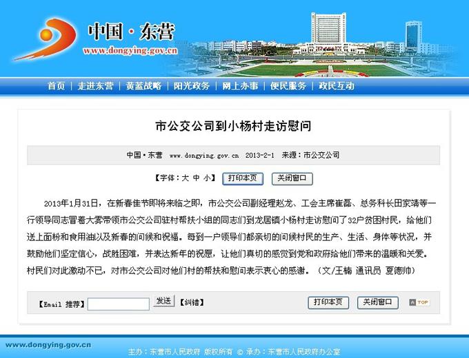 2013年1月28日東營市政府網站報道