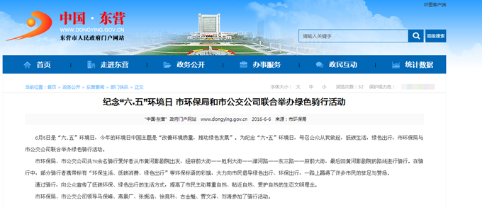 2016年6月6日東營市政府網(wǎng)站報道