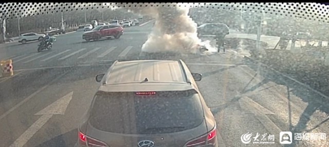 眼看火苗隨風越燒越旺,危急時刻,17路駕駛員張曉良駕駛著魯E97102公交車運行途經此處等紅燈,遠遠地看到前方冒著火光和滾滾濃煙的電動車,他拿起車載滅火器沖了過去,“當時路上的行人和車輛較多,情況十分的危急。”張曉良回憶說,他沒顧上仔細查看,把一瓶滅火器噴完,便抓緊回到車上繼續運行。