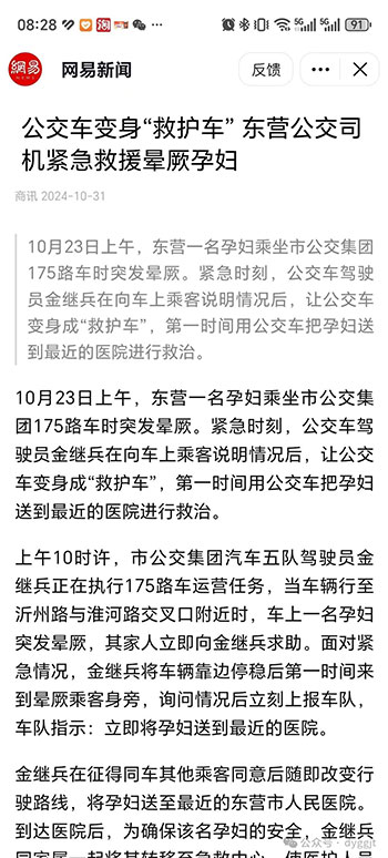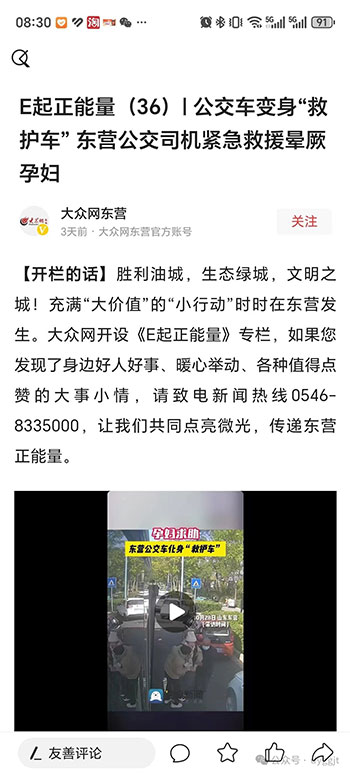 市公交集團汽車五隊駕駛員金繼兵救助孕婦事跡被媒體廣泛報道,引發(fā)數十萬網友瀏覽,并紛紛留言點贊。
